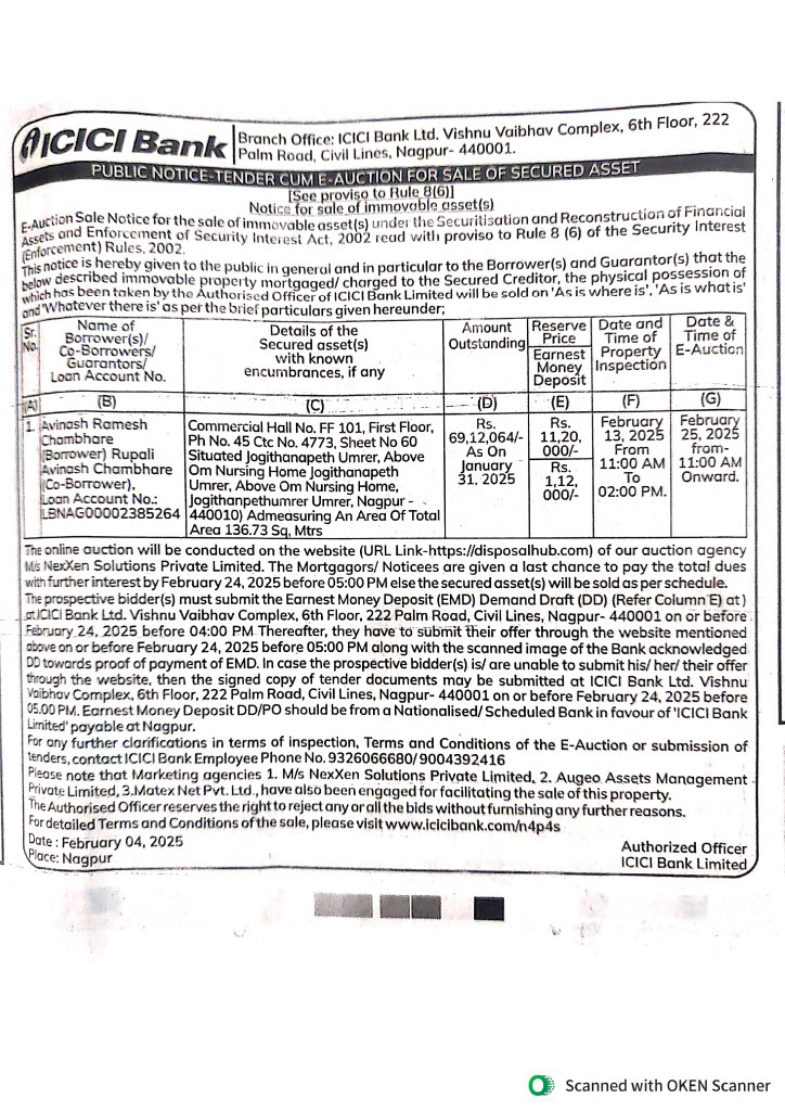 Commercial Hall at Jogithan peth Umrer, Avinash Ramesh Chambhare ( Borrower ) | Auction Properties in Nagpur |ICIC/100019/250225
