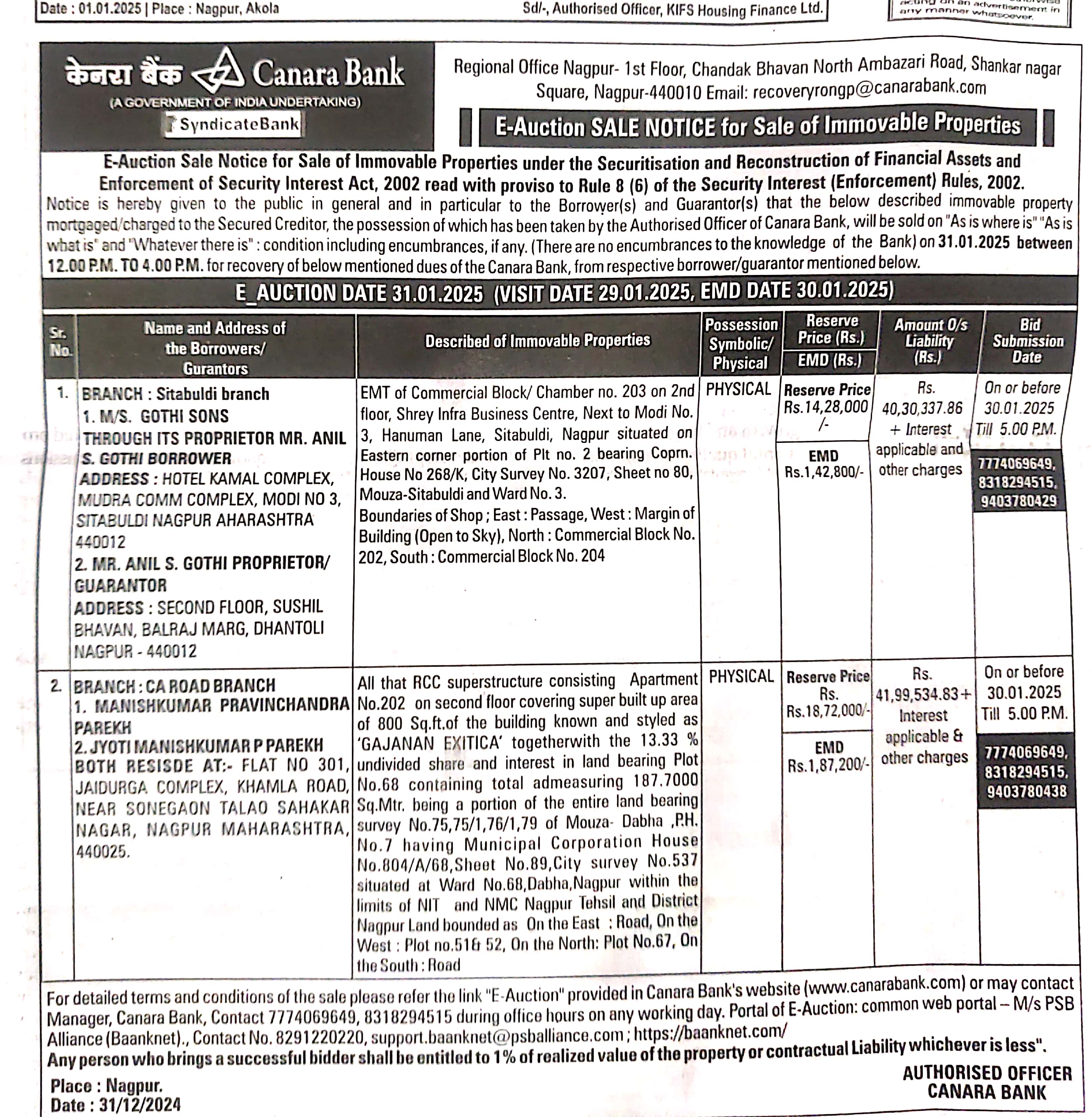All that RCC superstructure consisting Apartment No.202 on second floor covering super built up area of 800 Sq.ft.of the building known and styled as 'GAJANAN EXITICA' togetherwith the 13.33% undivided share and interest in land bearing Plot No.68 containing total admeasuring 187.7000 Sq.Mtr. being a portion of the entire land bearing survey No.75,75/1,76/1,79 of Mouza Dabha,P.H. No.7 having Municipal Corporation House No.804/A/68, Sheet No.89, City survey No.537 situated at Ward No.68, Dabha, Nagpur within the limits of NIT and NMC Nagpur Tehsil and District Nagpur Land bounded as On the East: Road, On the West: Plot no.516 52, On the North: Plot No.67, On the South: Road